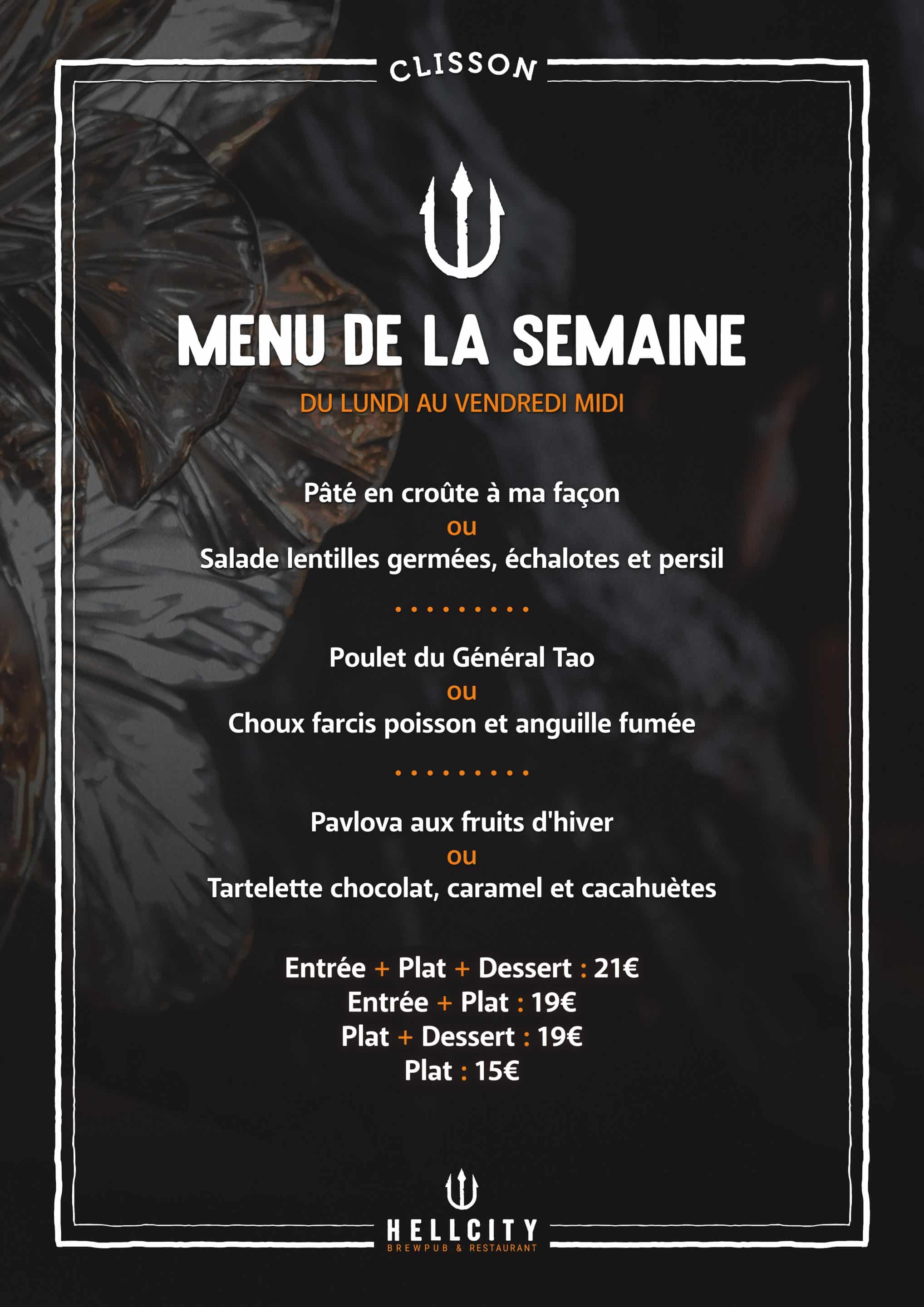 La carte food drink MENU DE LA SEMAINE Disponible Uniquement le Midi Du lundi 29 au vendredi o3 octobre